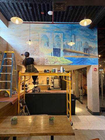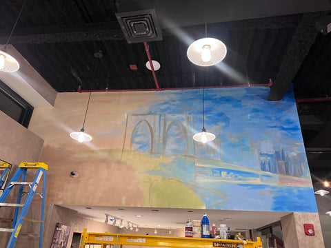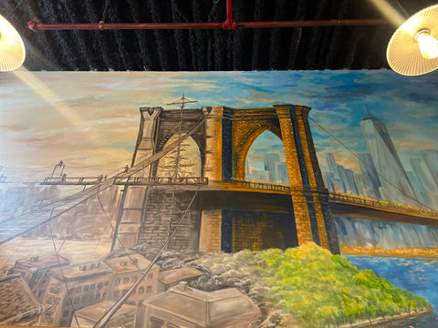Artist Karina Smyrnova created a mural of the Brooklyn Bridge that shows how the bridge has evolved from its initial construction in the 1800s to today. "I was like, 'This is what I want,' and [Smyrnova] just took it and ran," Eric LeVine said. "It was beautiful."
