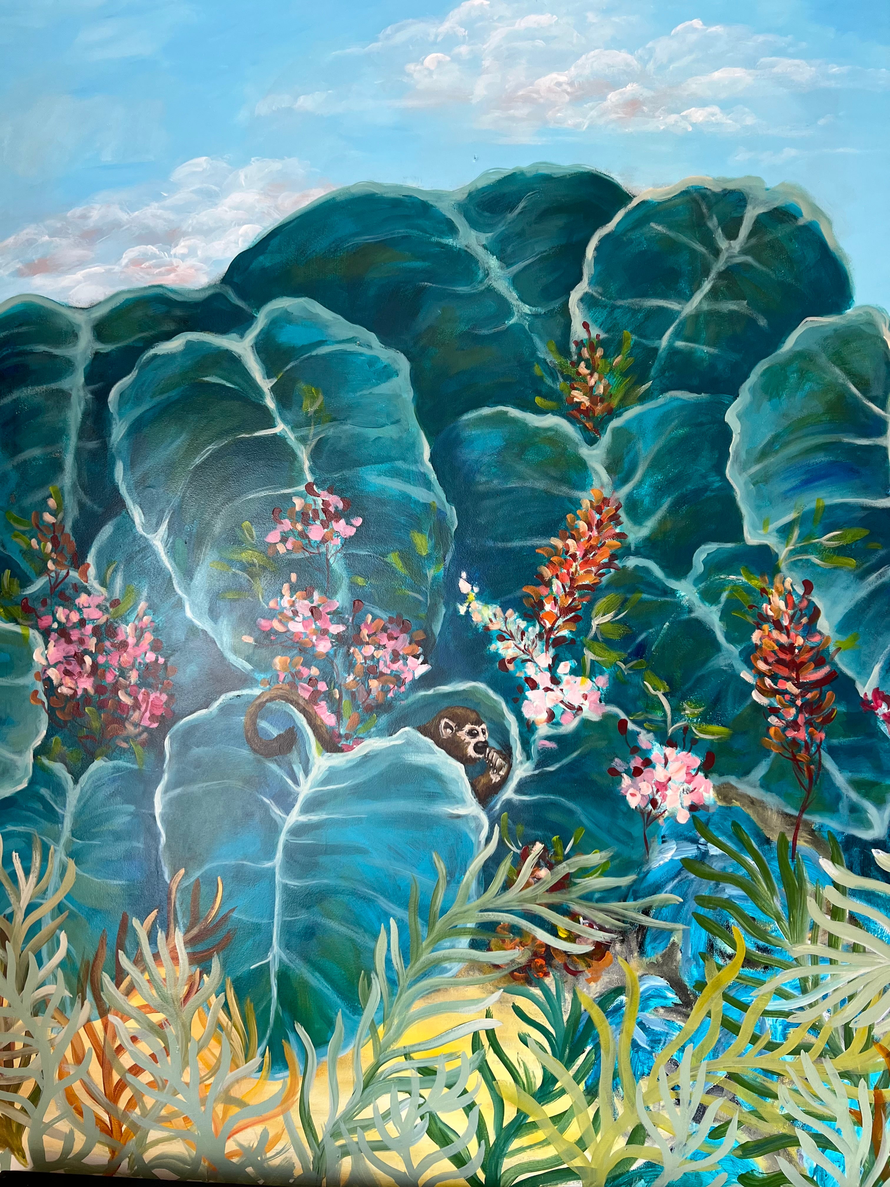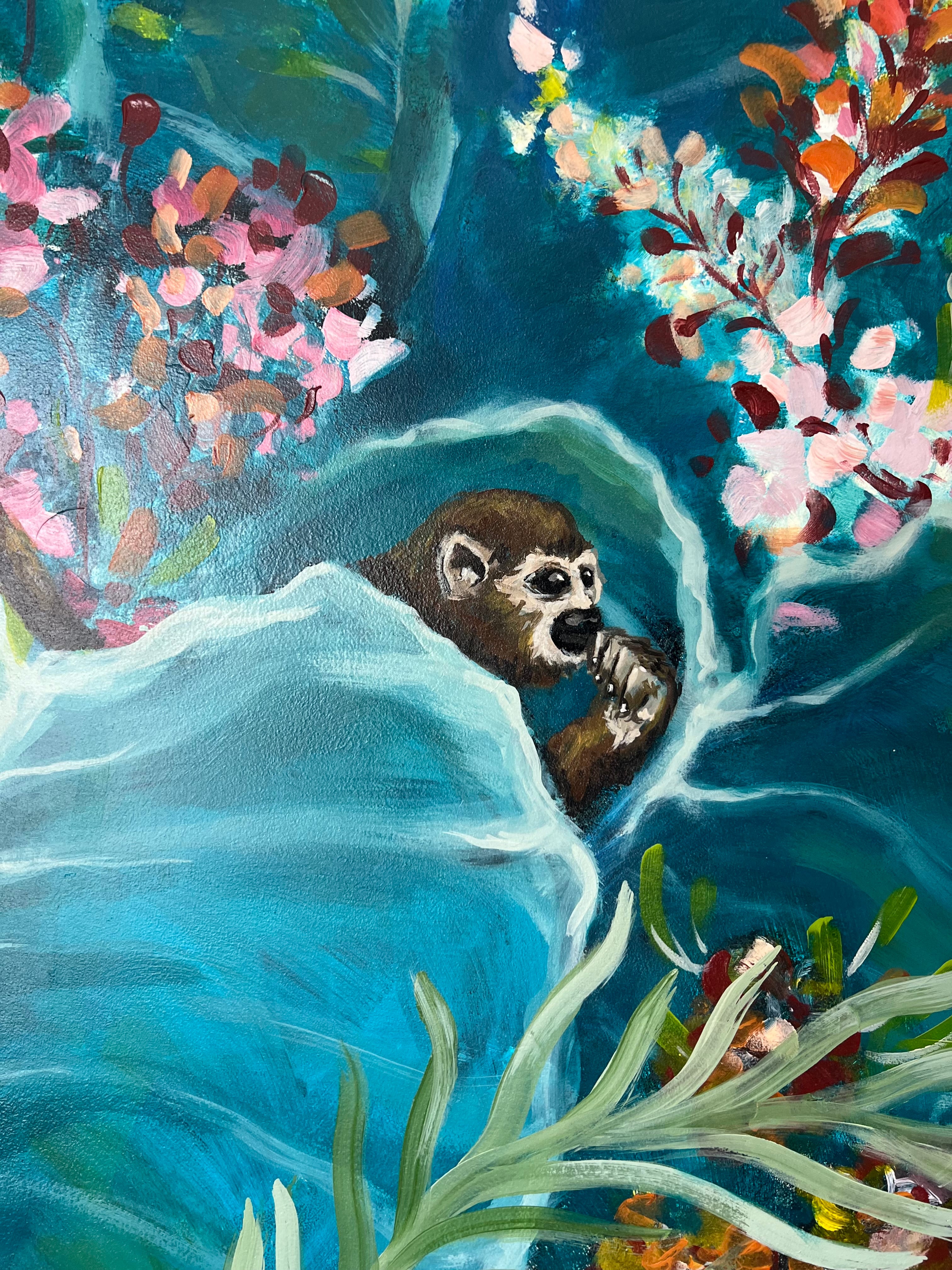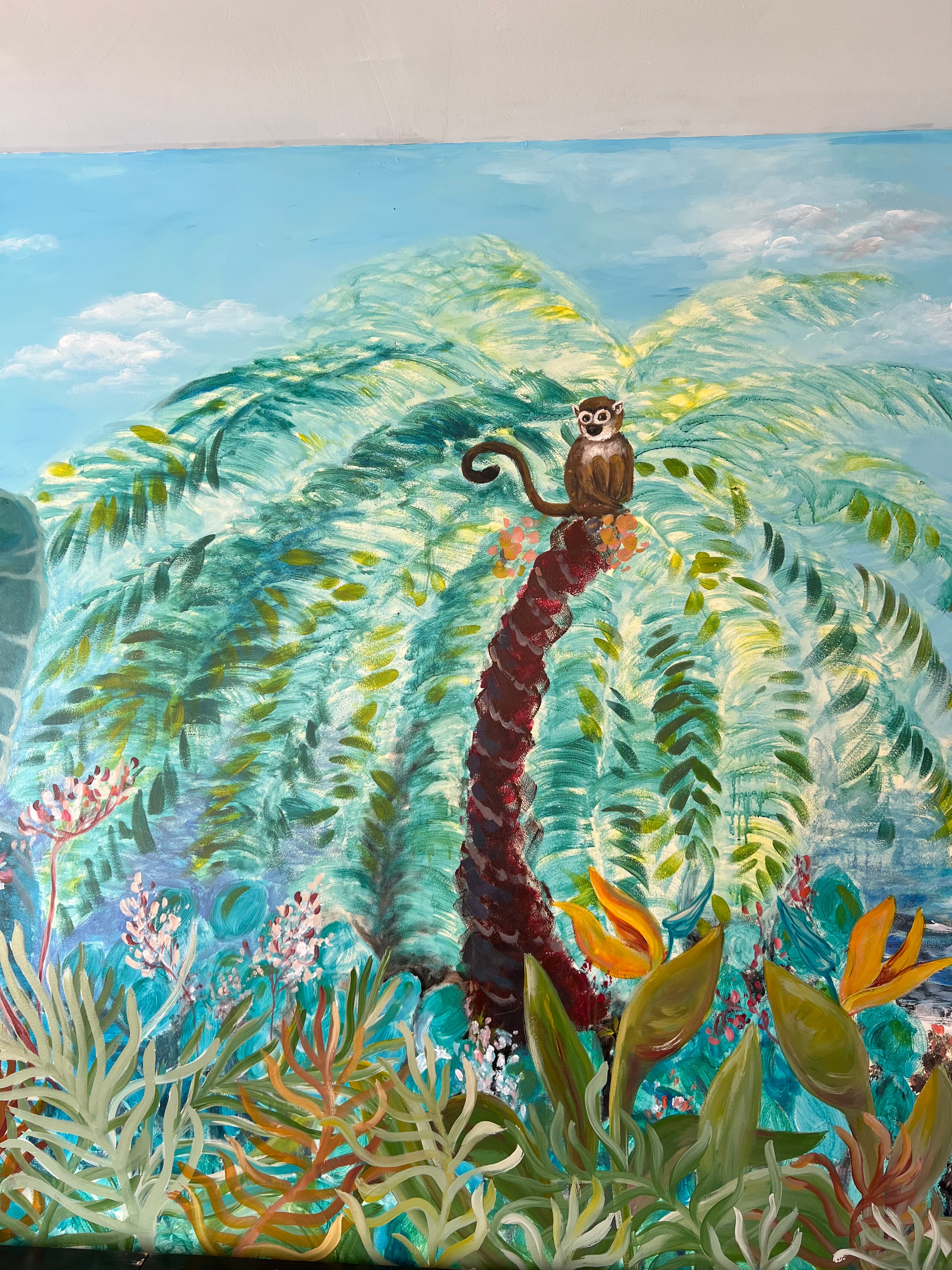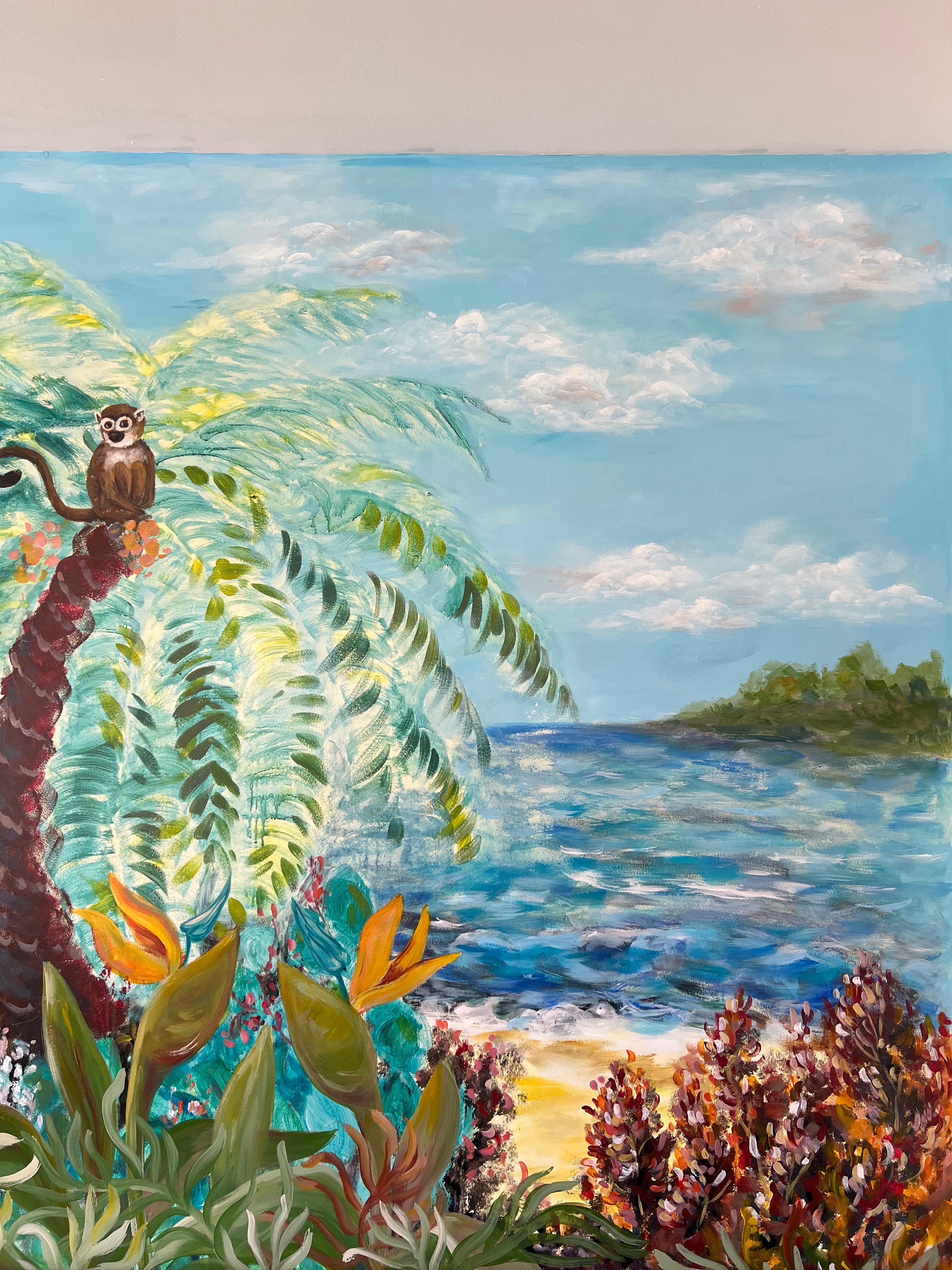 A beloved living-room mural in New Jersey needed new energy. We restored and refreshed the original tropical scene—amplifying color, adding playful details, and bringing the wall back to life without losing the client’s memories attached to it.
