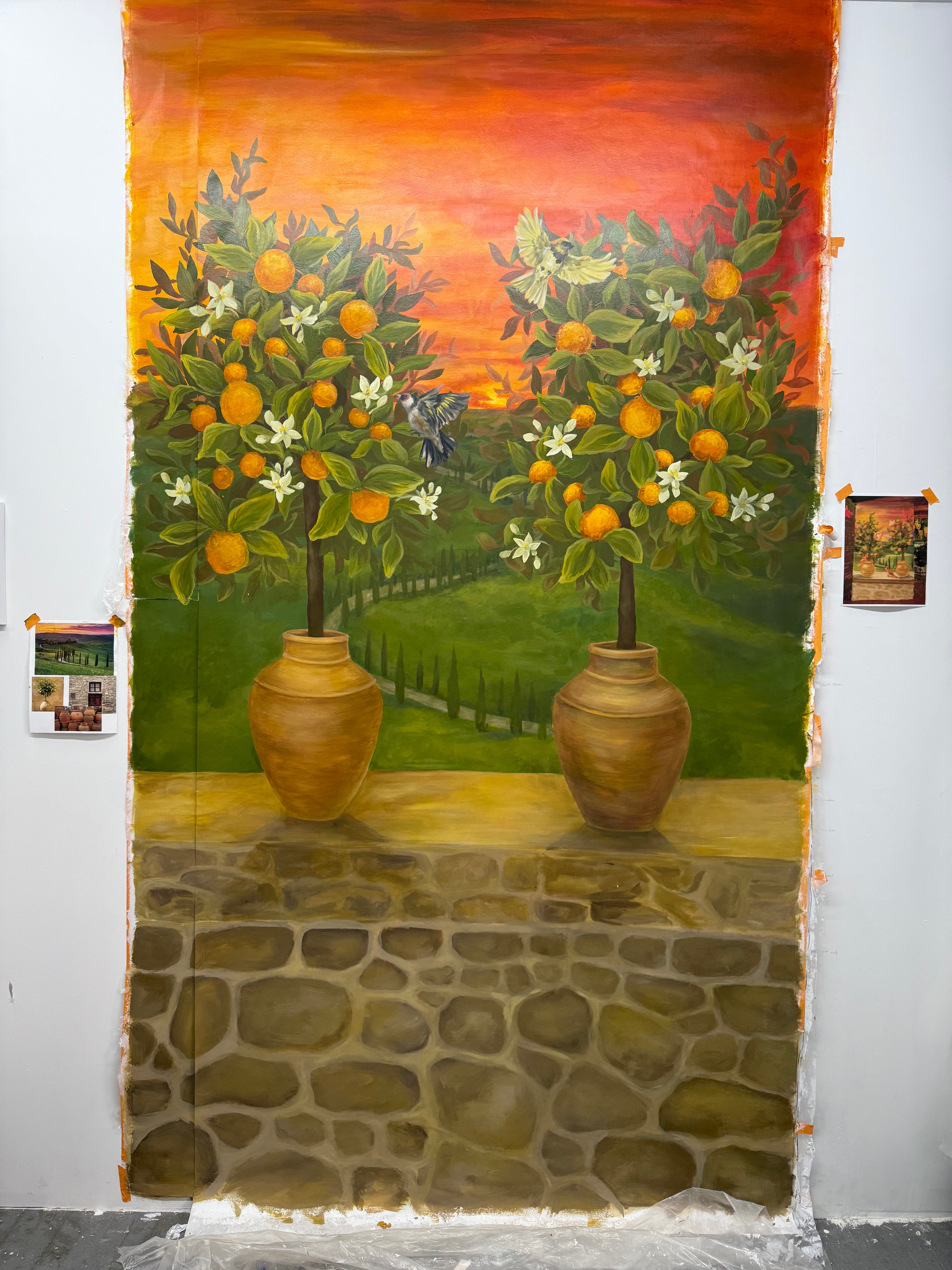 “Tuscan Sunset Orchard” — Hand-Painted Mural for Canto West Village (NYC)
