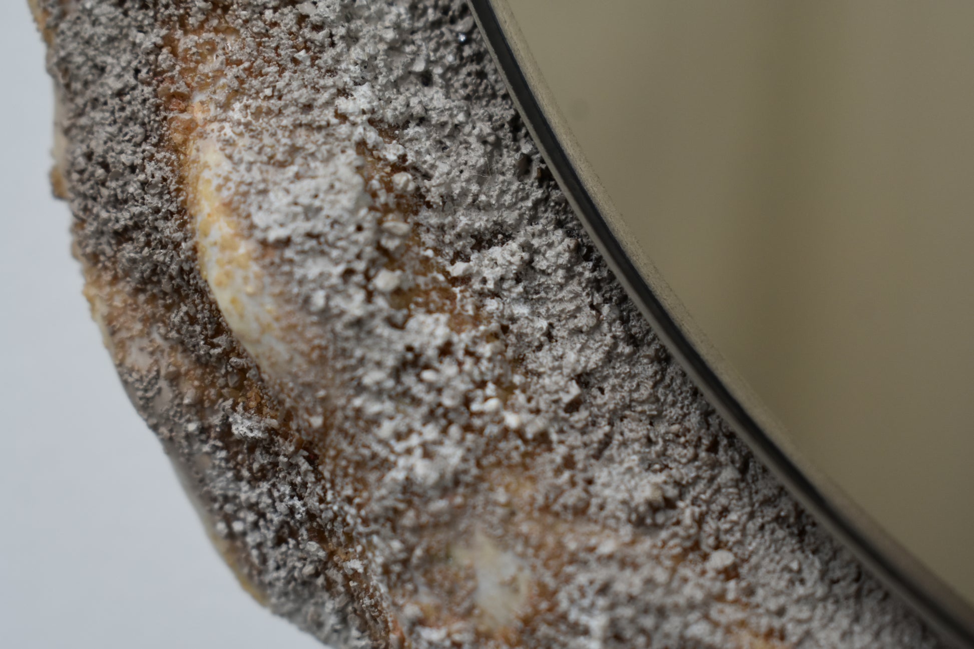 Hand-formed and glazed by hand, this ceramic wall mirror echoes the raw textures of the Black Sea—salt-washed stone effect. The rim blends glazed ceramic with natural sand, creating a tactile, coastal surface that catches light beautifully.