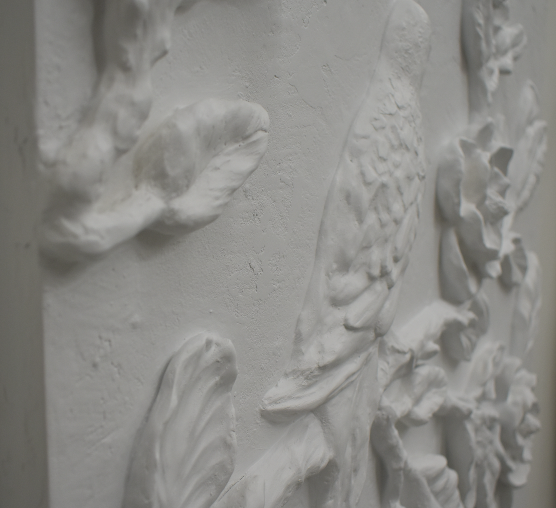 Materials: Primed MDF panel, Plaster of Paris, acrylic finish, French cleat